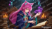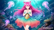 ピンク色のロングヘアと猫耳を持つ少女が、サイバーパンク都市から深海神殿、和風庭園から未来都市まで、10の異なる世界を駆け巡る高品質AIイラスト素材集です。