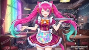 ネオンカラーの多層レイヤー処理により、サイバー空間の奥行きと光の粒子感を表現。髪のグラデーション(ピンク→パープル→エメラルドグリーン)は3段階の色調整で実現しました。高揚感・ワクワク感・近未来へのときめき。