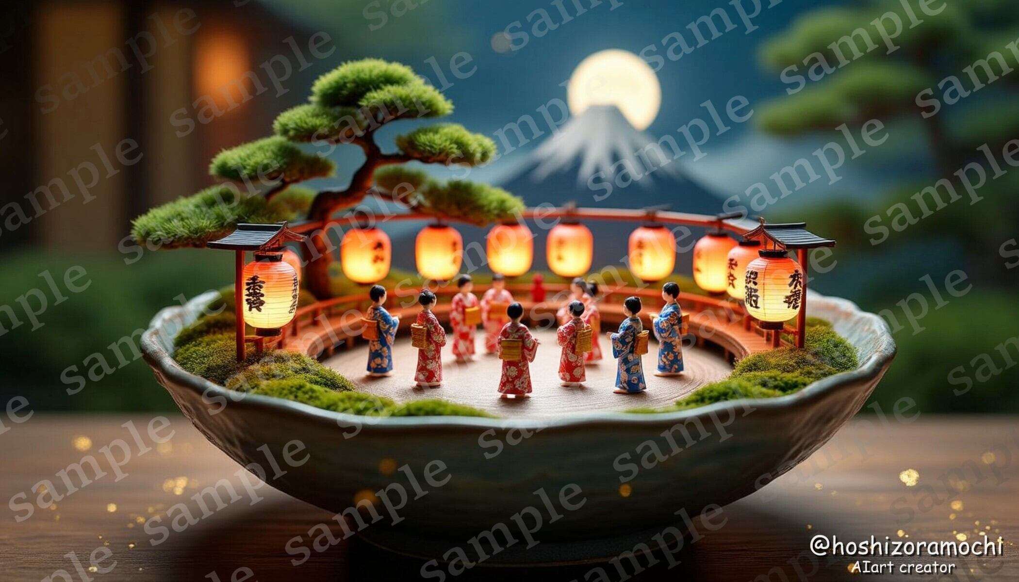 ・盆栽風の夏祭り——提灯と金粉で凝縮された一夜の煌めき