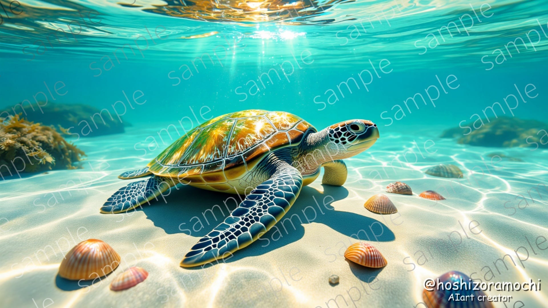この商品は、AIによって丁寧に生成された「ウミガメ」をテーマにした高品質デジタルアート素材セットです。