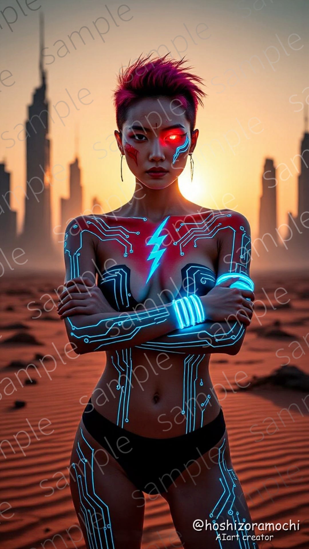 タイトル: 灼熱の砂漠に咲く、サイバーパンクの緋牡丹