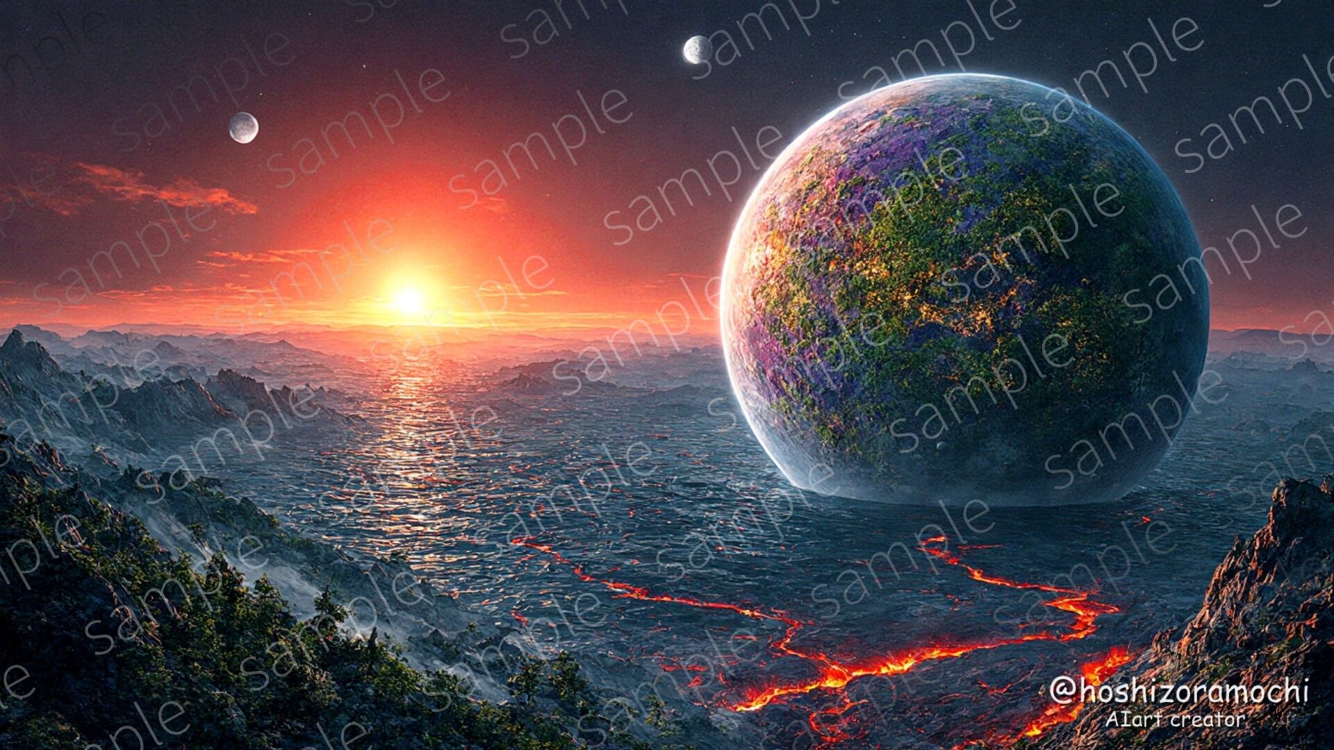 地球から遥か彼方の系外惑星まで、5つの惑星を精密に描写したAI生成画像素材集です。科学的データと芸術的想像力を融合させ、天文学的な正確性と視覚的美しさの両立を追求しました。各惑星の特徴的な色彩、大気の質感、光と影の演出を丁寧に表現しています。