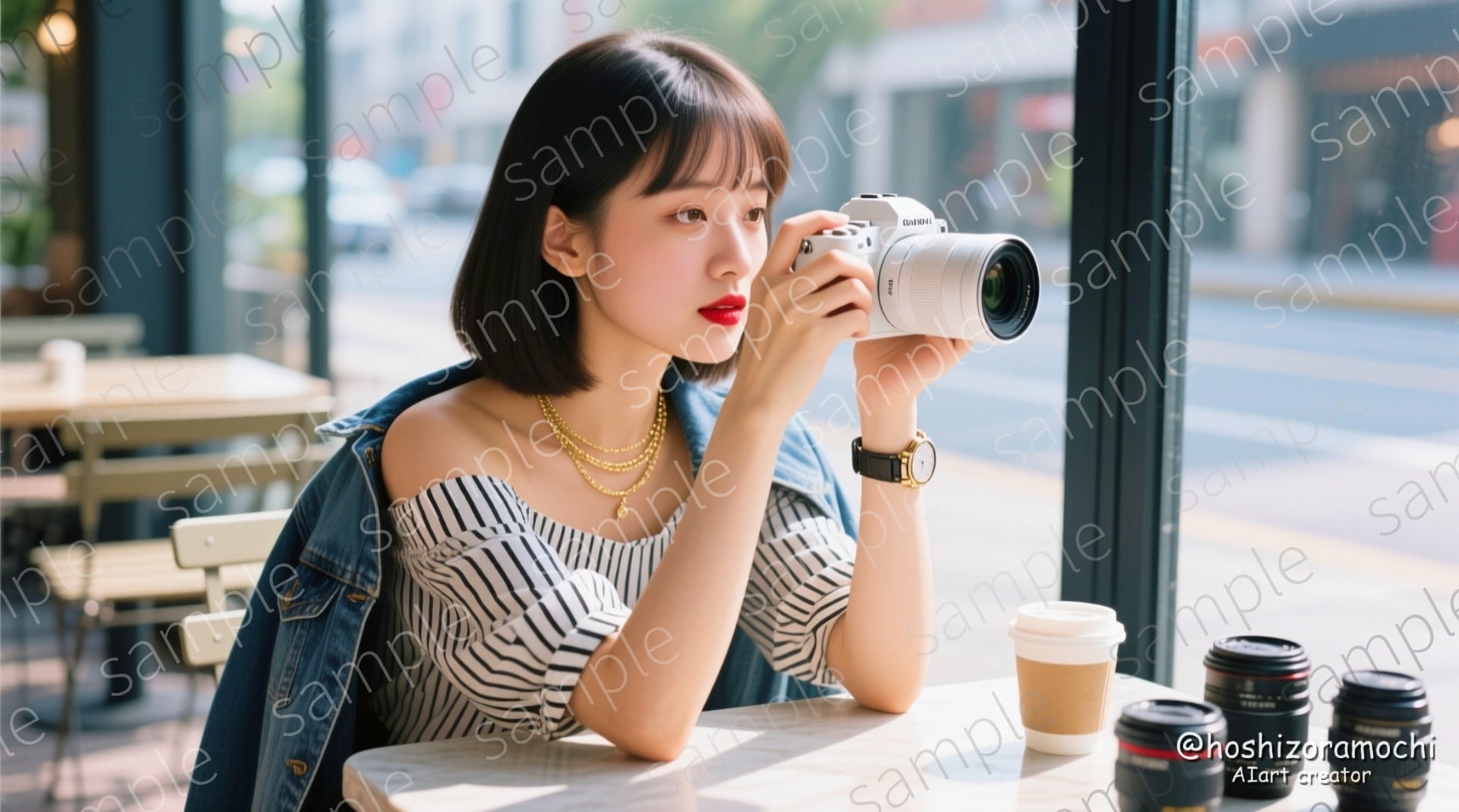 そしてAI画像生成と出会い、プロンプトという言葉を紡ぐことで、理想の世界を形にできることを知りました。カメラを持てなかった自分の代わりに、理想のカメラ女子たちを創り出す――それがこの作品集の原点です。