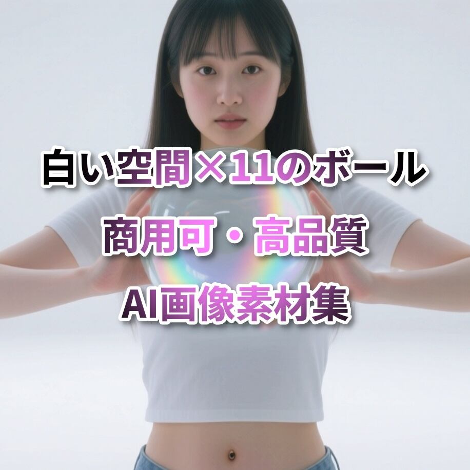 その記憶を形にしたいと思い、AI画像生成という手段を選びました。ミニマリストの美学――余白の美しさ、そぎ落とすことで生まれる強さ――を追求した結果、白い空間と一つのボール、そして一人の女性という構成に辿り着きました。