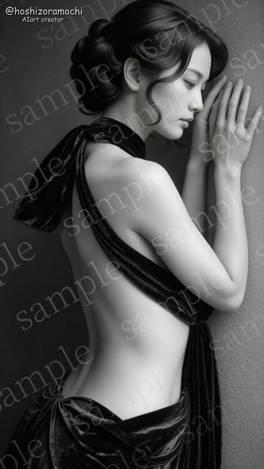 モノクロームの静寂。重厚な黒いベルベットと曲線のコントラストが、彫刻のような芸術性を生み出しています。